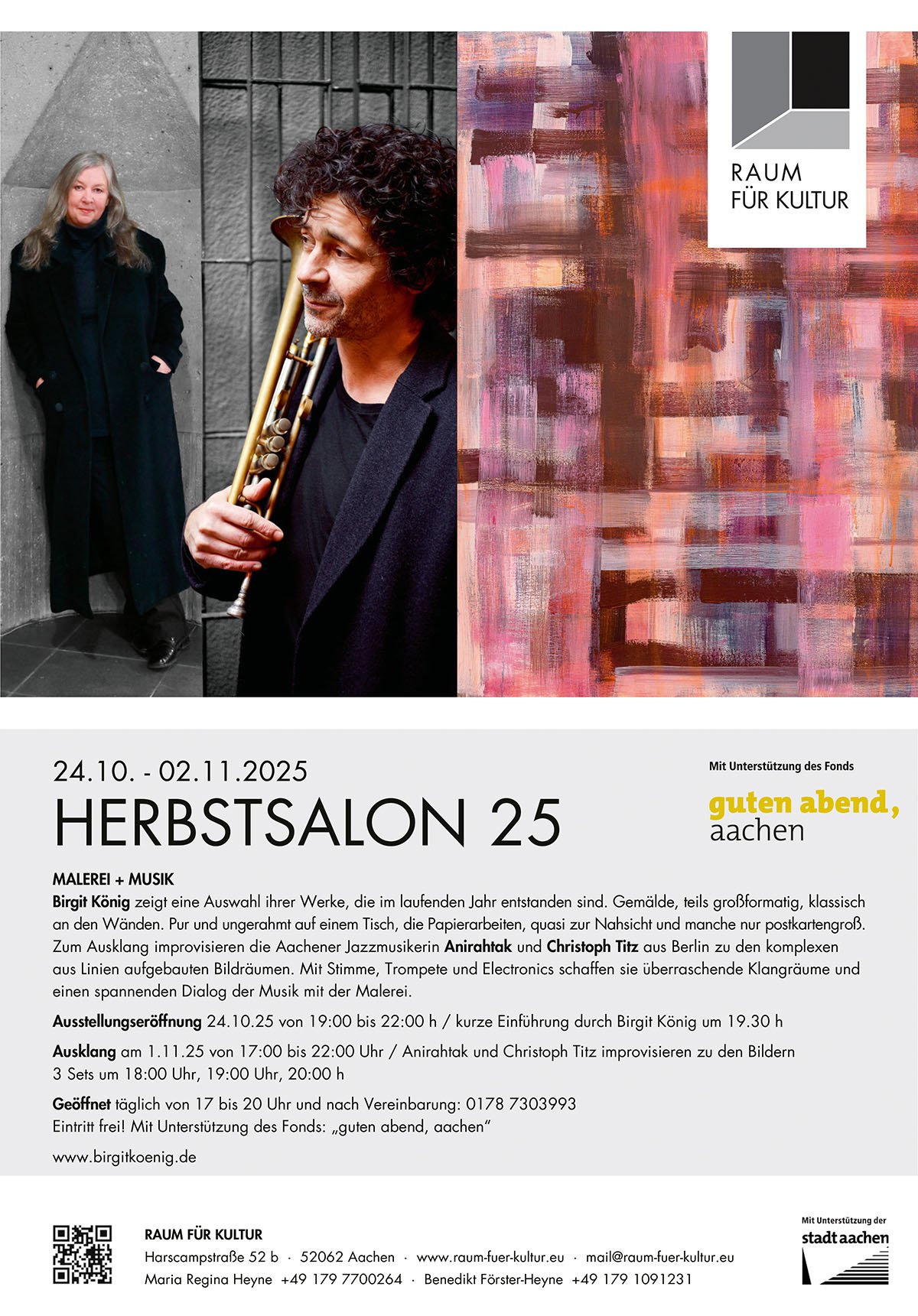 „Raum für Kultur“, Harscampstraße 52b, Aachen. „Schmuckkunst 13“ in der Gold + Silberschmiede Förster, Klosterplatz 1, Aachen. „Schichtarbeit“ im Kunsthaus Frankenthal, ab 15. Dezember 2023. 8 Meter 20 ab 7. Dezember in der Galerie Schürmann, Kamp-Lintfort. 11/22 im Dezember 2023 im Kunstraum 383 Köln. Impressionen. Planung.